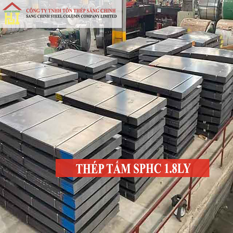 Thép tấm SPHC 1.8 ly là thép cán nóng, bề mặt nhẵn, dùng trong sản xuất, gia công và xây dựng.