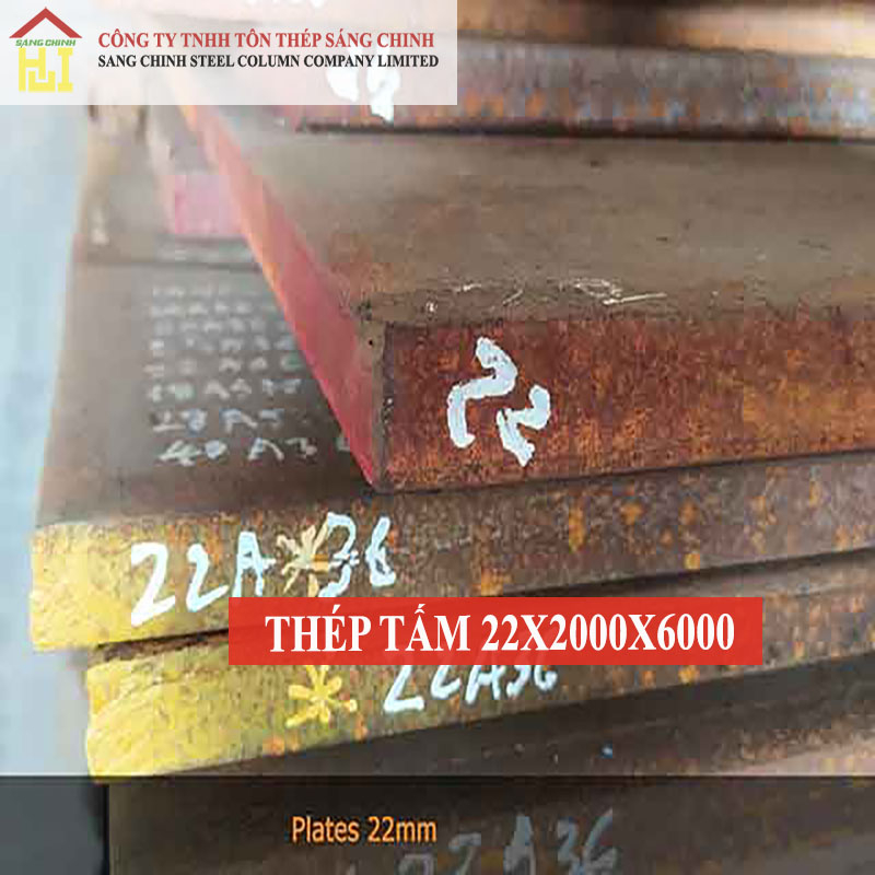 Với độ dày 22mm, tấm thép này thuộc loại dày, có khả năng chịu lực uốn và chịu nén cao. Kích thước lớn (2m x 6m) giúp giảm thiểu số lượng mối hàn trong các kết cấu rộng, tăng tính nguyên khối và thẩm mỹ.