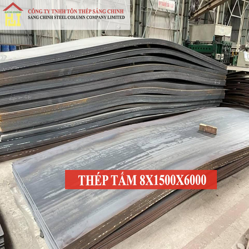 Các loại thép này đều được sản xuất theo tiêu chuẩn chất lượng nghiêm ngặt, đảm bảo tính đồng nhất về thành phần hóa học và cơ tính. Sản phẩm thép tấm nhập khẩu có độ dày 8mm, kích thước tấm 1500x6000mm, là quy cách phổ biến, phù hợp cho nhiều hạng mục thi công.